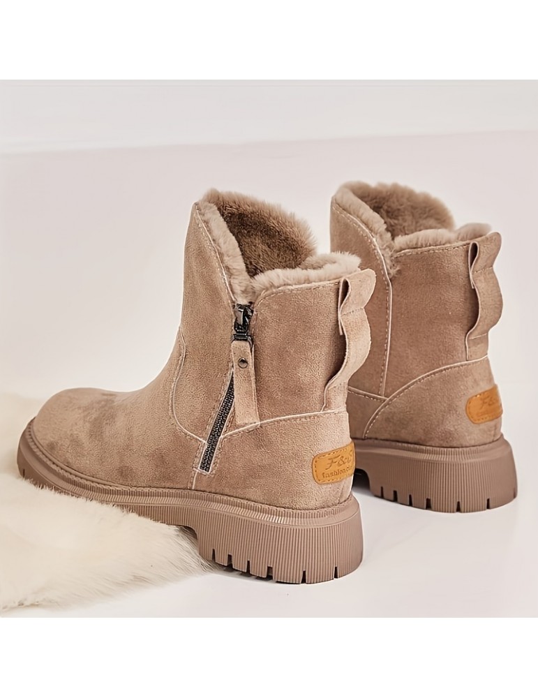 Women's Plush Lined Snow Boots, Side Zipper Solid Color Suedette Short Boots, Winter Warm Outdoor Boots